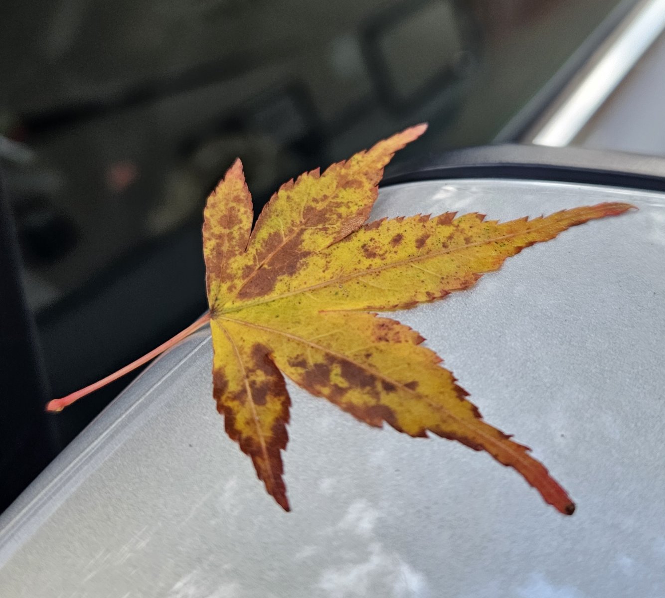though some have let go, landing on my car, where I enjoy them on my windshield.