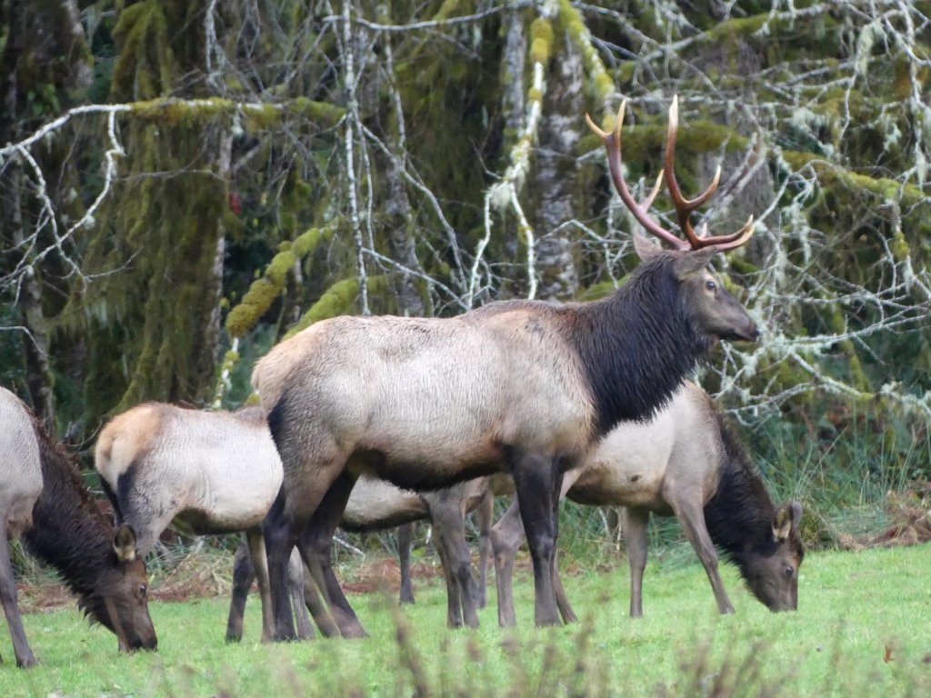 So much so that I don’t know how to unpack the pictures I took, how to show you the beauty of the lakes, rivers, ocean, rain forest and wildlife. So rather than try to cover it in a single post I thought I’d devote this one to the Roosevelt Elk which inhabit the land.