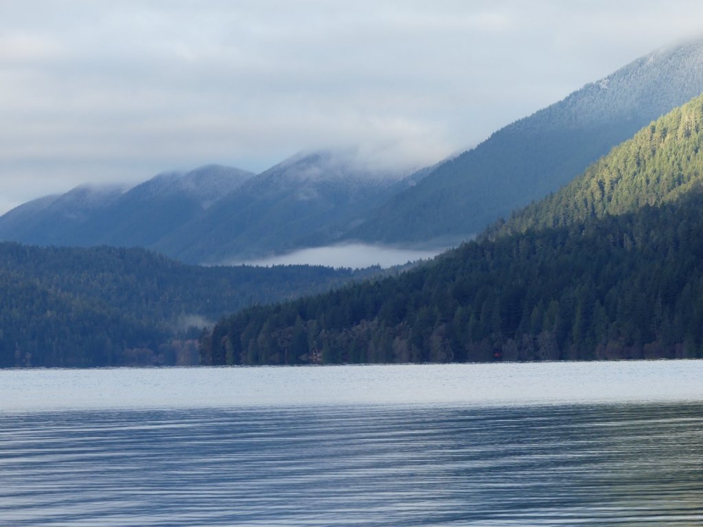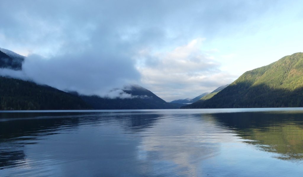“Lake Crescent, a cold, clear, glacially-carved lake, owes its existence to ice. Its azure depths, which plummet to 624 feet, were gouged by huge ice sheets thousands of years ago. As the ice retreated, it left behind a steep valley that filled with the clear blue waters of Lake Crescent.” Olympic National Park
