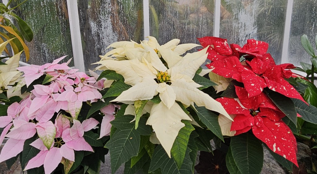 Those different coloured poinsettias are lovely! We saw cream ones in Mexico and a few pink too, but here in the UK it’s nearly always red ones sold in the shops, because they look more Christmassy I guess.