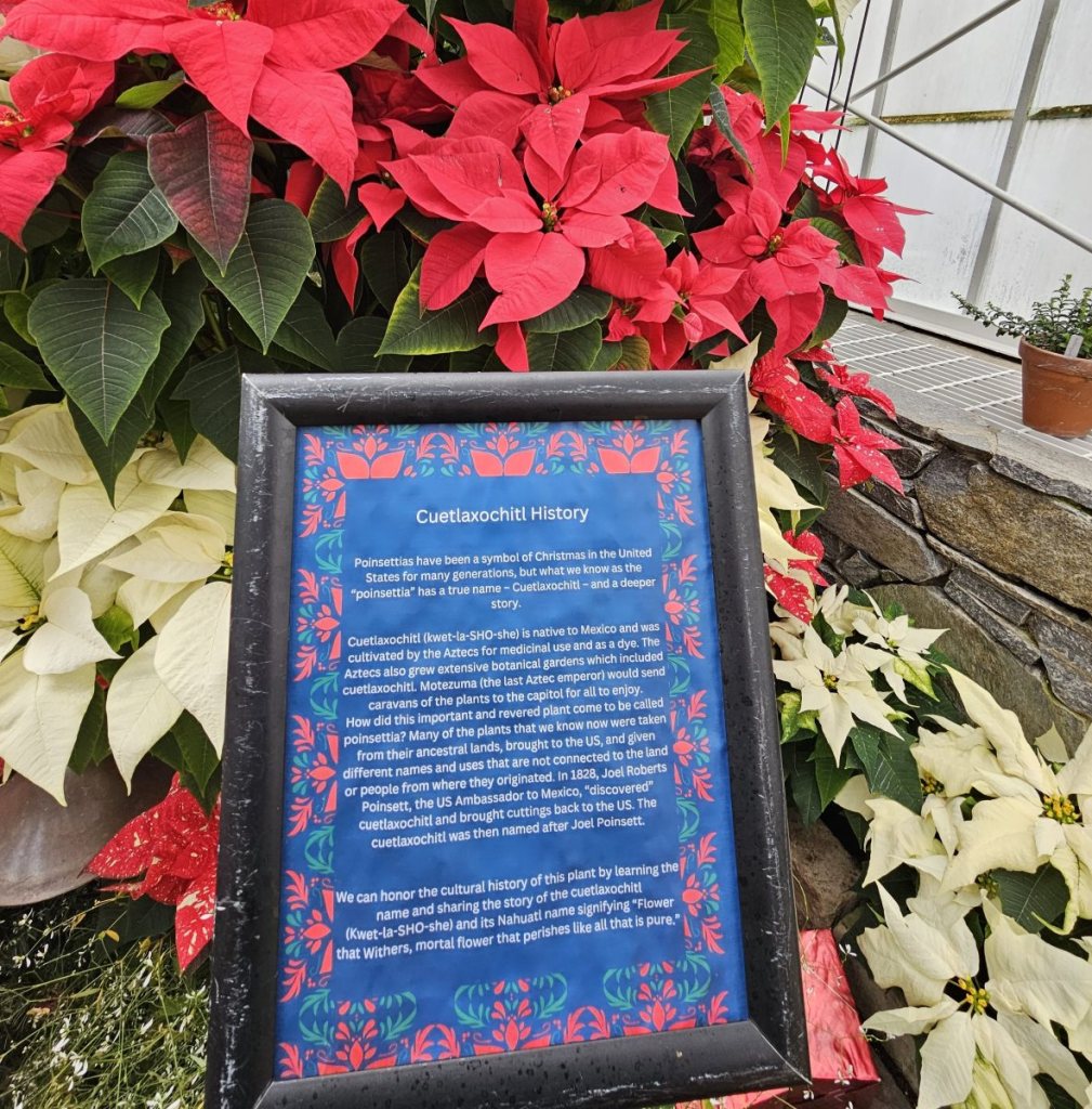“Poinsettias have been a symbol of Christmas in the United States for many generations, but what we know as the “poinsettia” has a true name – Cuetlaxochitl – and a deeper story. Cuetlaxochitl (kwet-la-SHO-she) is native to Mexico and was cultivated by the Aztecs for medicinal purposes and as a dye. The Aztecs also grew extensive botanical gardens which included cuetlaxochitl. Motezuma (the last Aztec emperor) would send caravans of the plans to the capital for all to enjoy.”