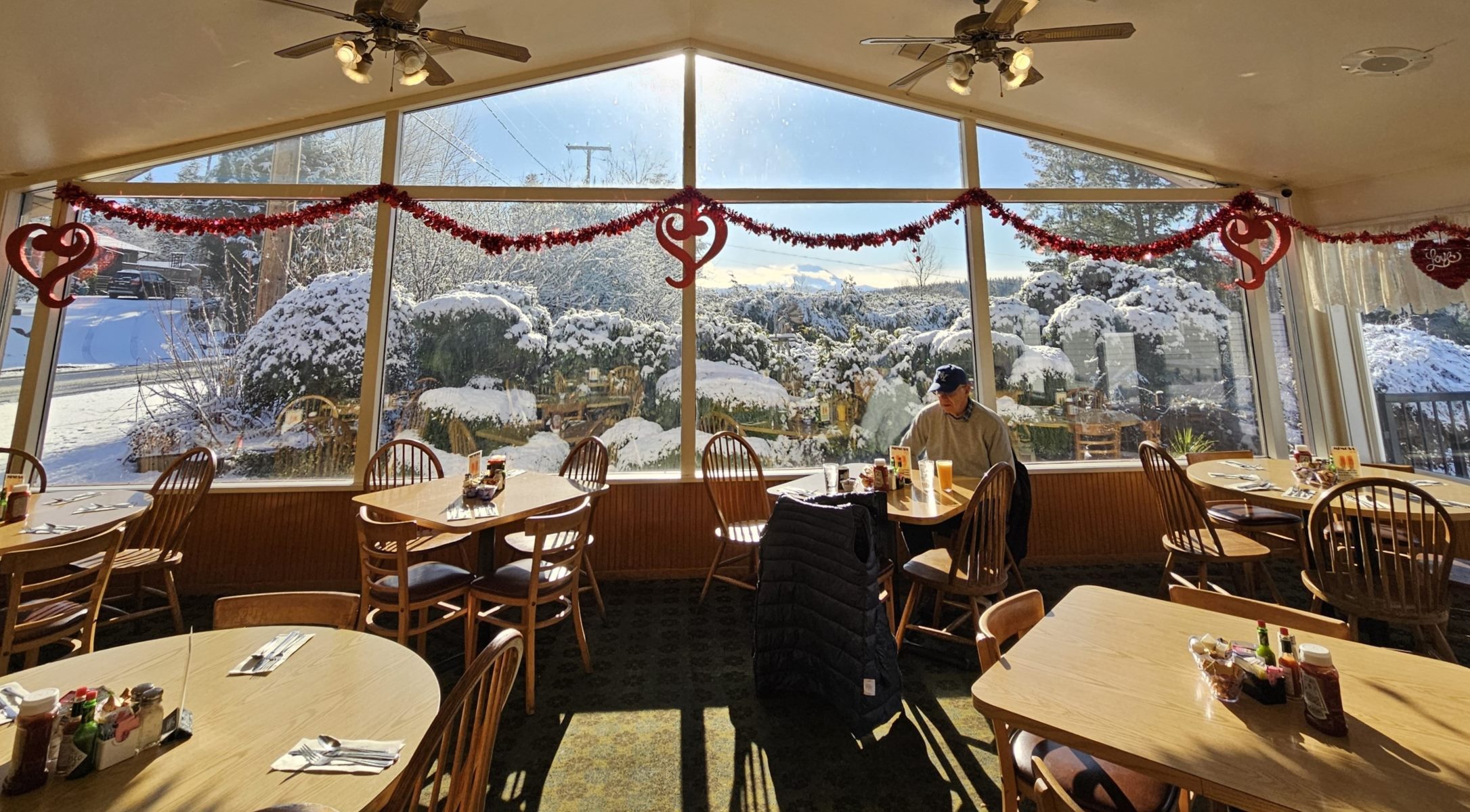 We stopped at the Black Diamond Bakery for breakfast and had the restaurant to ourselves, with Mt. Rainier on display through the window.