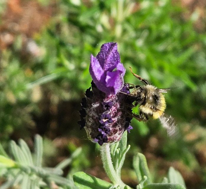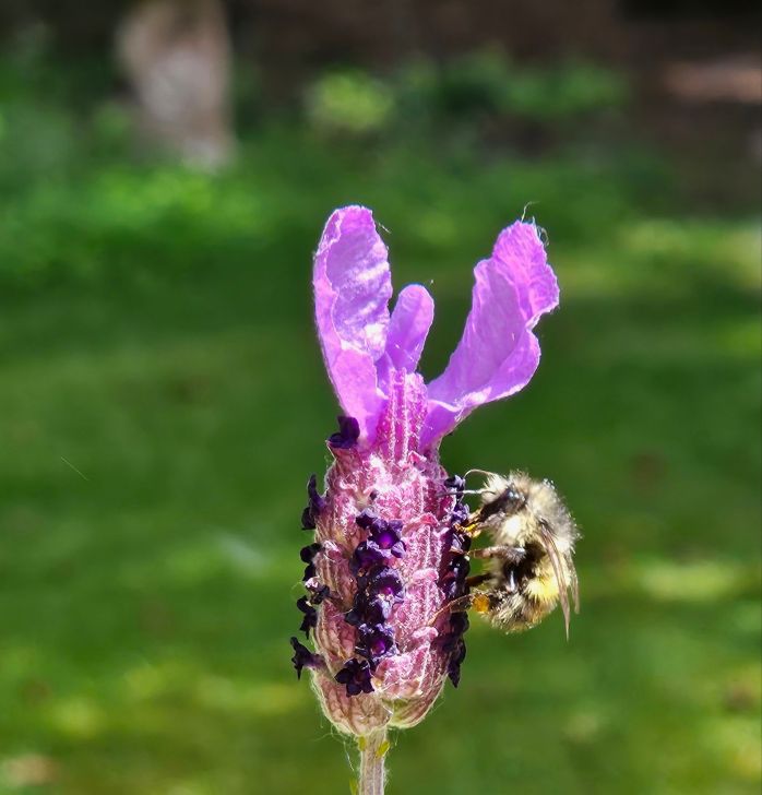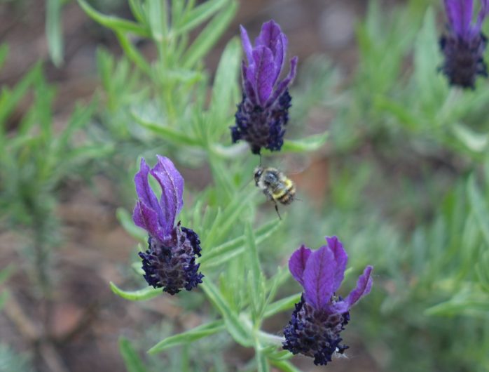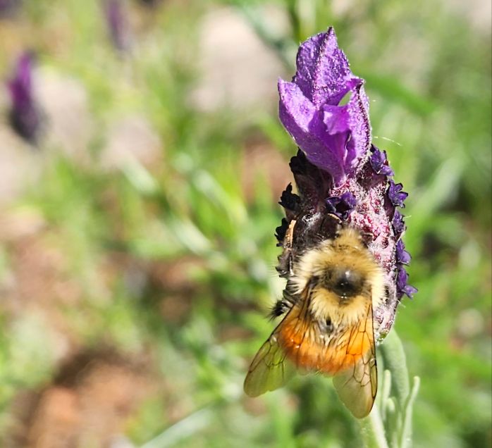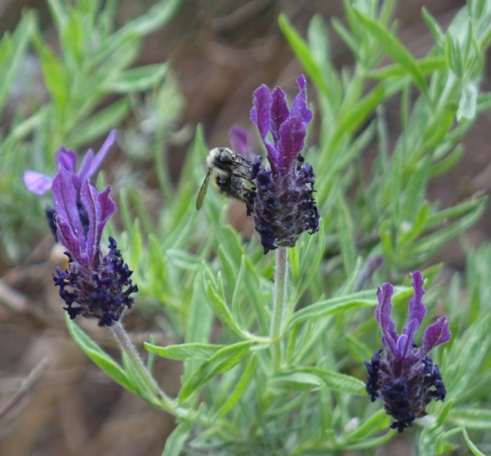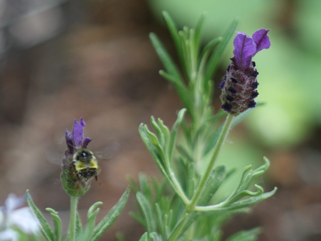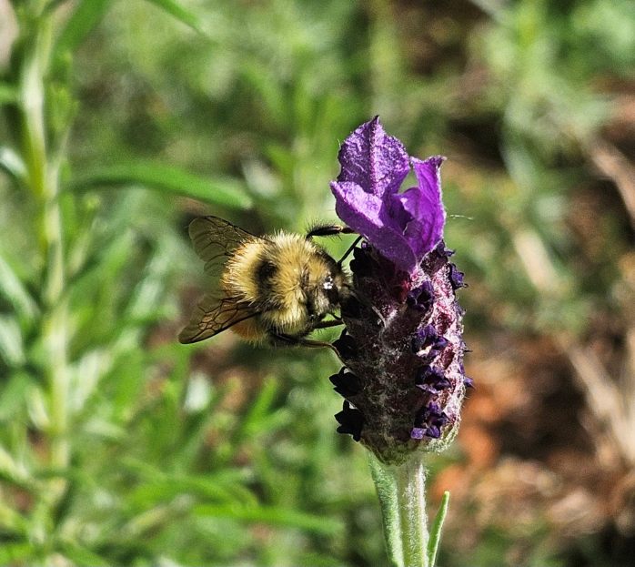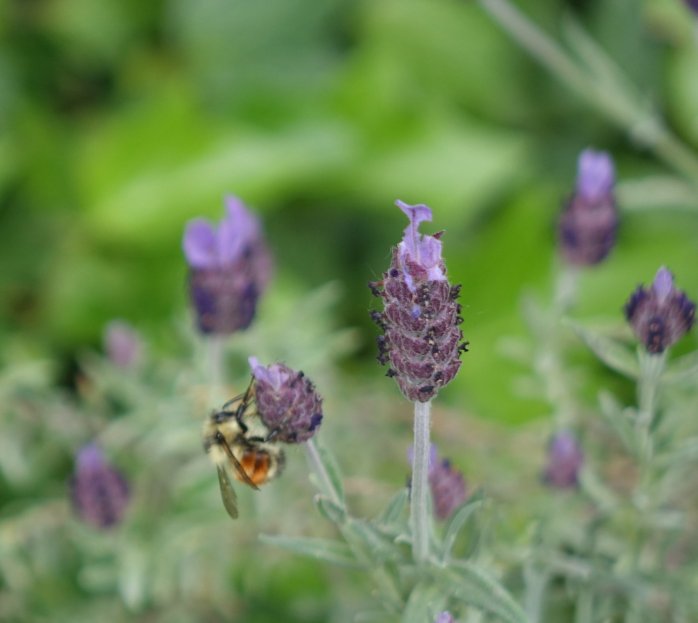 I love this time of year, when the lavender begins to bloom attracting bees, which in turn, attract me. Bumblebees and honeybees are things of beauty with their fat, furry bodies, tiny legs and sheer wings.