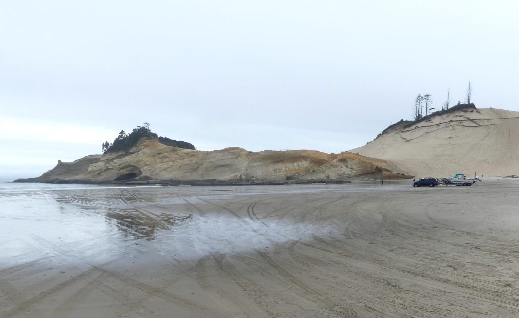 Cape Kiwanda, with its many tide pools small inlets, natural arches and deep chasms, is a stunning example of large-scale erosional sculpting in sandstone. Remnants of huge Holocene era parabolic dunes that cover the highest parts of Cape Kiwanda add to the scenic interest of the locality. This unique geological feature is a must see and is one of the most photogenic landforms along the Oregon Coast.”