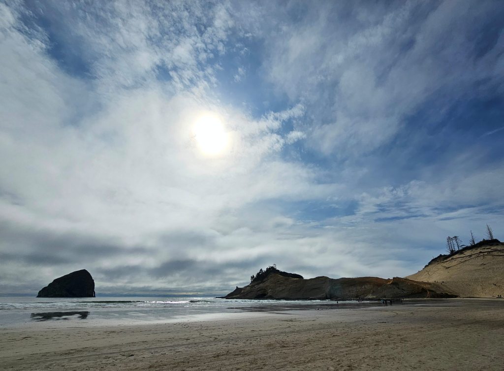What a wonderful week on the Oregon Coast! In my last post, I shared pictures of Oregon’s most famous beach, Cannon Beach and Haystack Rock. In this post I’ll share a lesser known beach, even more unique with its giant Sandstone Bluff and even bigger Haystack Rock, Cape Kiwanda at Pacific City.