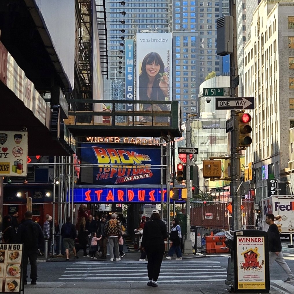 It was on Broadway, next to the Winter Garden Theatre where we saw ‘Back to the Future.’ Oh, what fun!