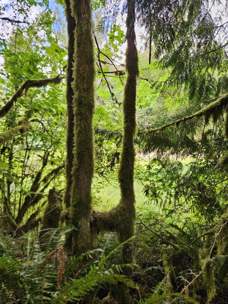 I entered the wooded trail to the river, and came upon an animal tree, he offered his back for a place to rest but I continued on.