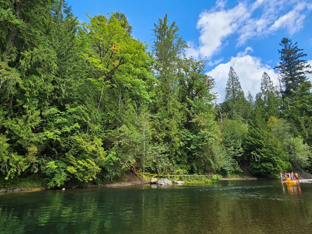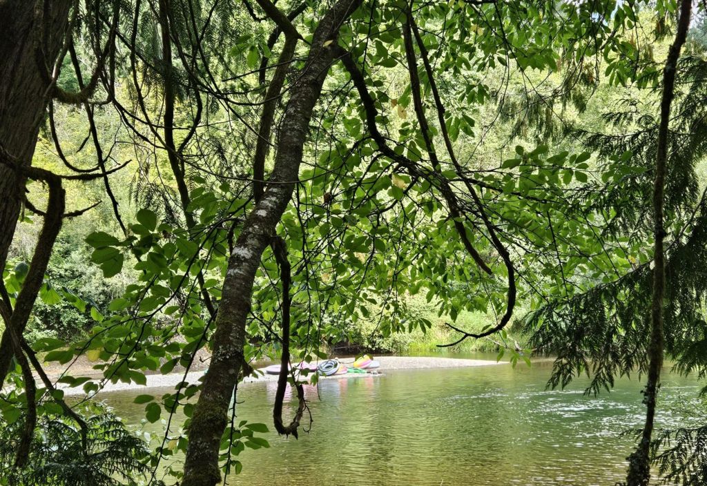 I saw the river through the trees, and signs of life on the shore.