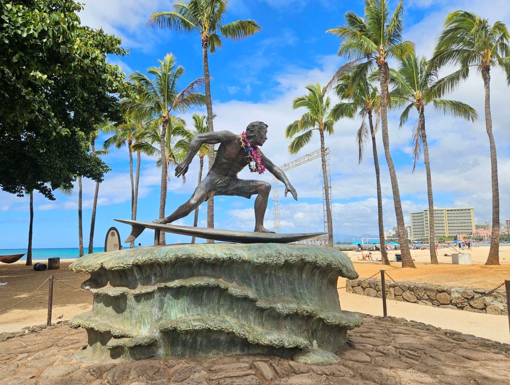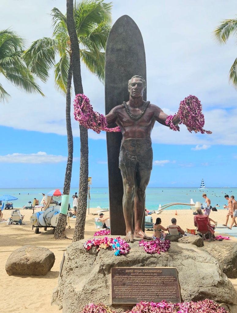 Near the large banyan tree I looked for the iconic statue of Duke Paoa Kamanahoku, Olympic gold medal swimmer and father of modern surfing.