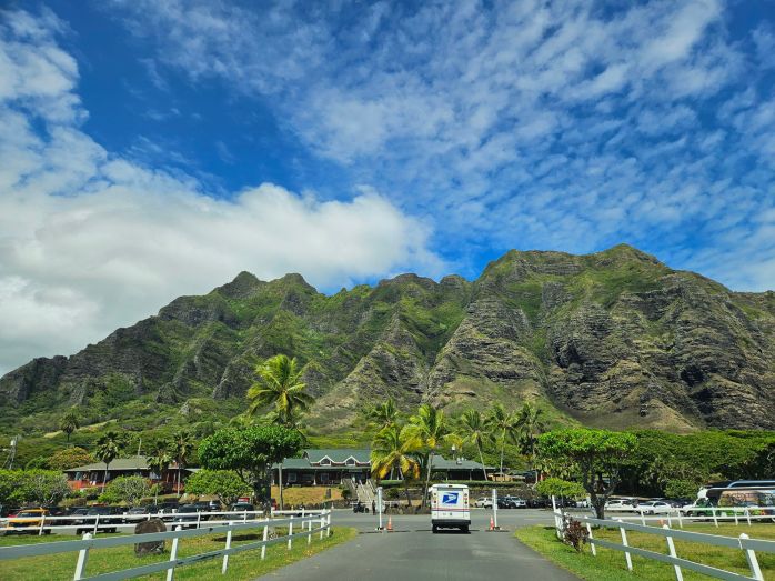 The town was all beach on one side with the dramatic Ko’olau Mountain Range on the other. Here’s a picture of those mountains from our visit to Kualoa Ranch, which I’ll save for a later post.