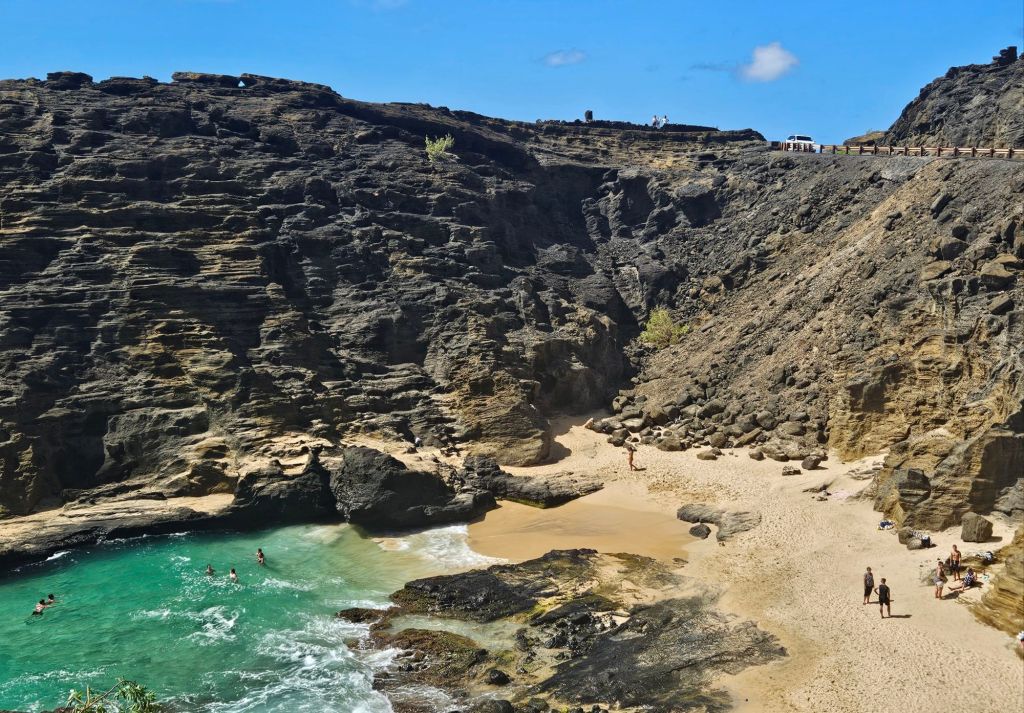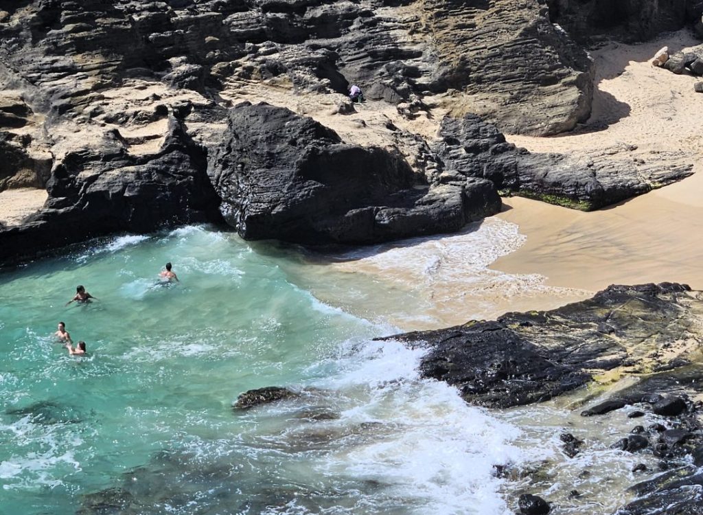We stopped at Halona Overlook and Blowhole, where you can look down upon Halona Cove, a private little beauty of a beach that featured prominently in a movie deep in the last century, From Here to Eternity.