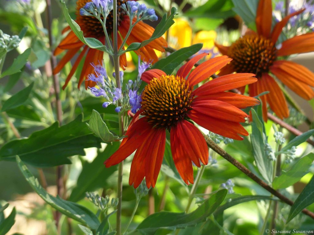 1. Wow, these cone flowers are so colorful, Susanne! It is nice when they come back! Are the yellow flowers with the purplish centers also a cone flowers? Those are stunning too!