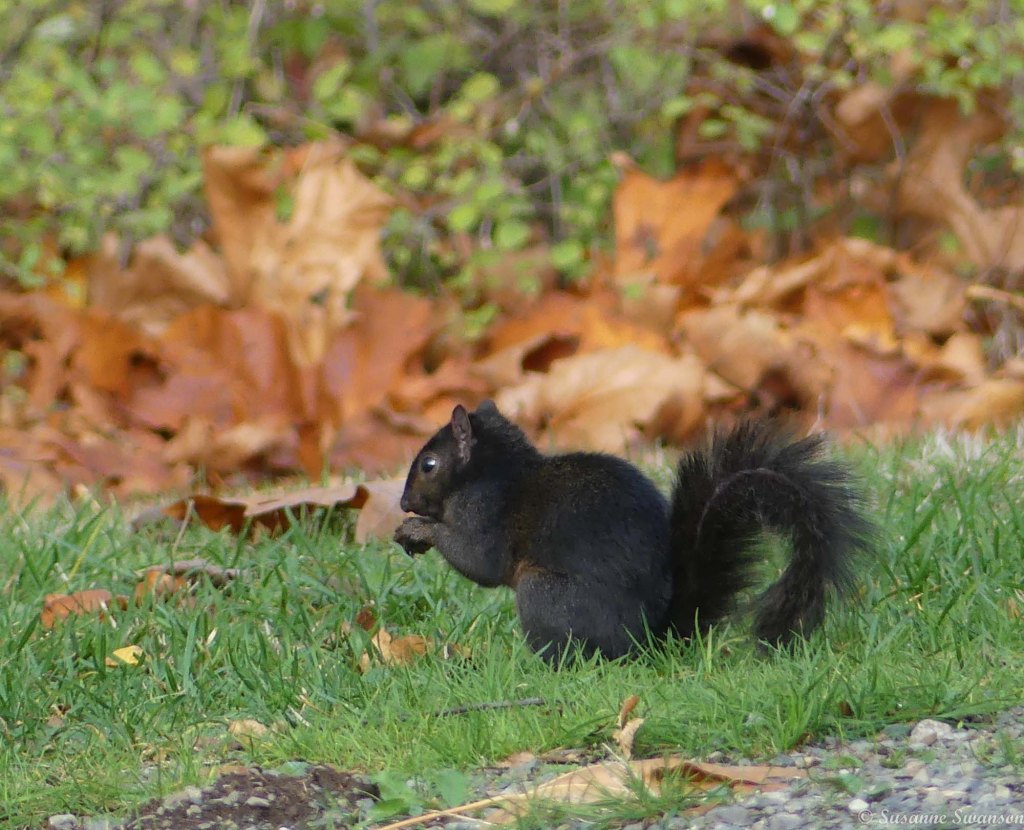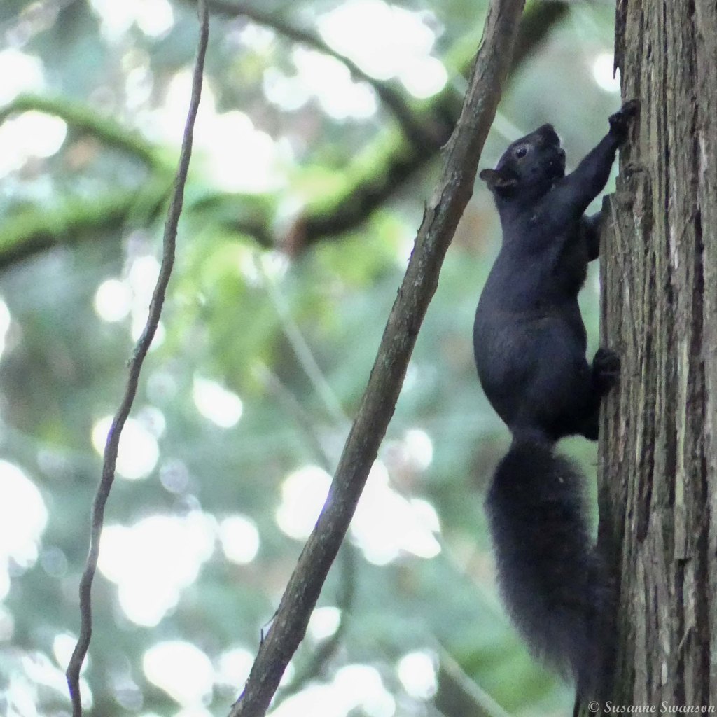 According to my extensive research – ha 🙂 – black squirrels are not a separate species, rather they’re a melanistic variation, in Washington State, most often a variation of the Eastern Gray Squirrel.