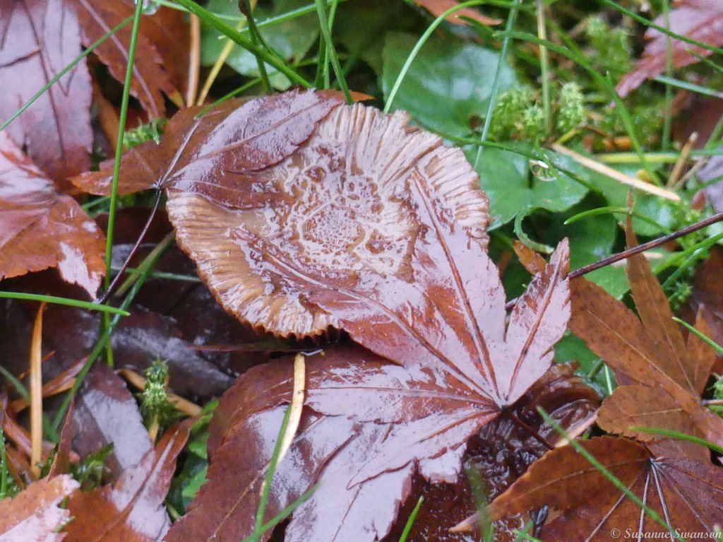 2. Rain, rain, rain, but it sure makes for beautiful photography, Susanne! I love the mushrooms and a couple where a leaf sat on top of one! Very nice!