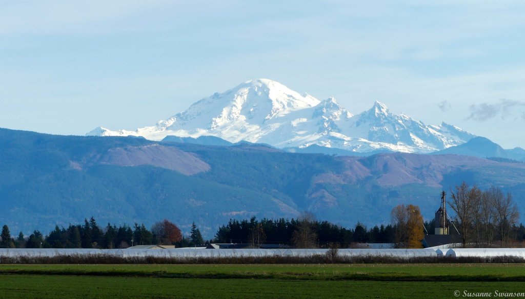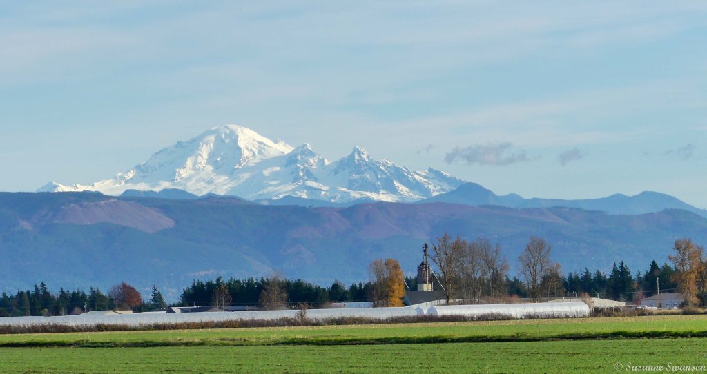 Later, we took the backroads north to the little town of Lynden, the northernmost town in the contiguous U.S., with more than 10,000 residents. Looming above the farmland were the best views of Mt. Baker, bright and beautiful,