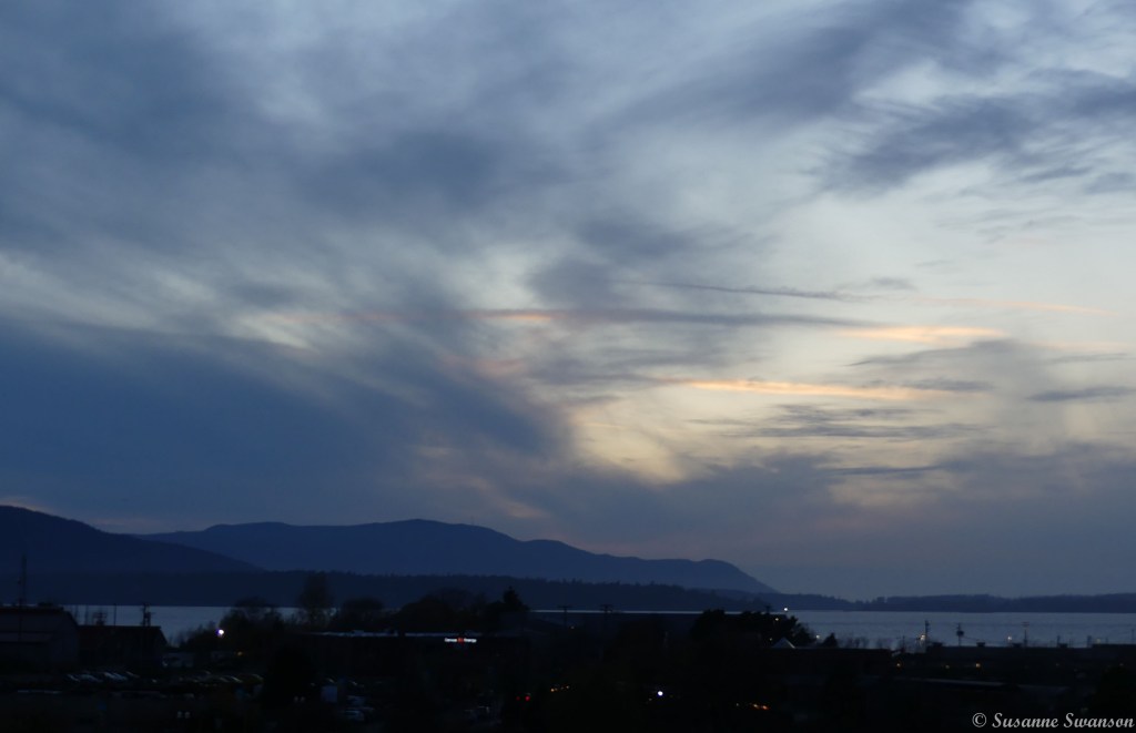 There was a very mellow sunset through the clouds that night over Bellingham Bay.