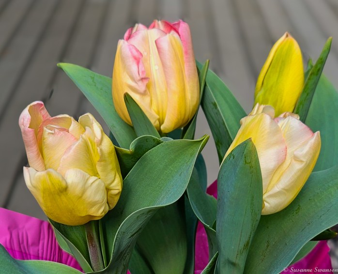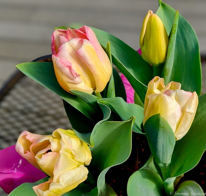 For more color, I picked up a pot of tulips when I was out and about this weekend;