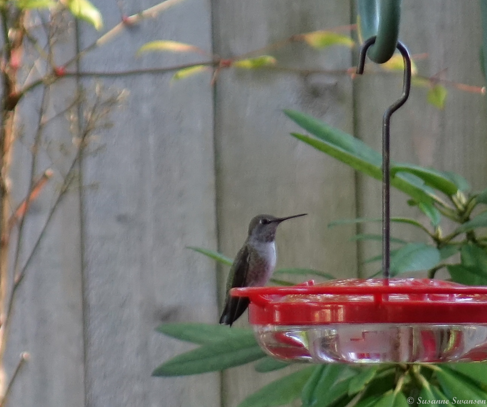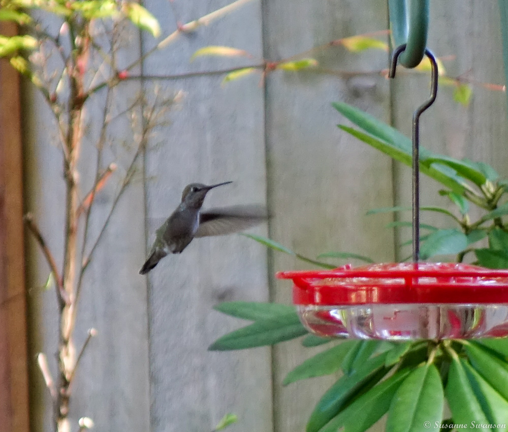 I didn’t get a picture of that, but I did get a few pictures of a hummingbird feeding, this a female Anna’s.