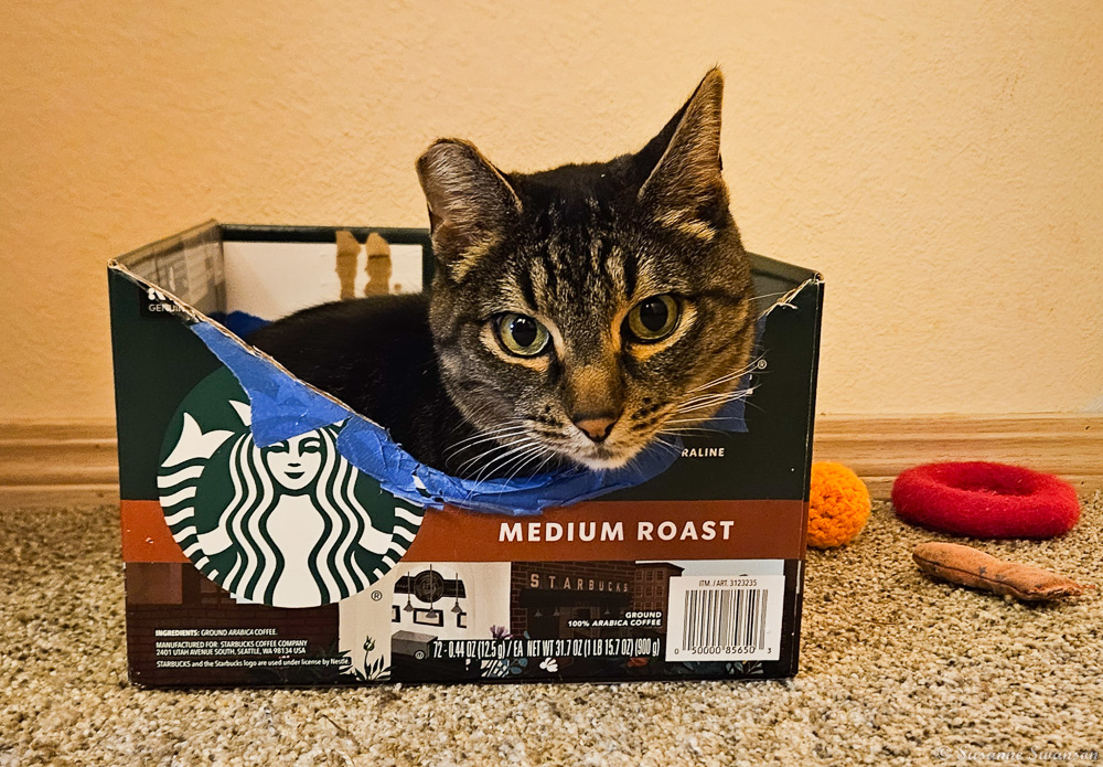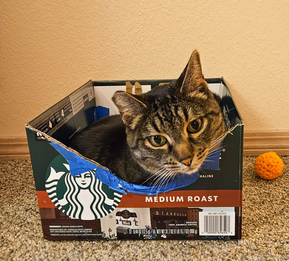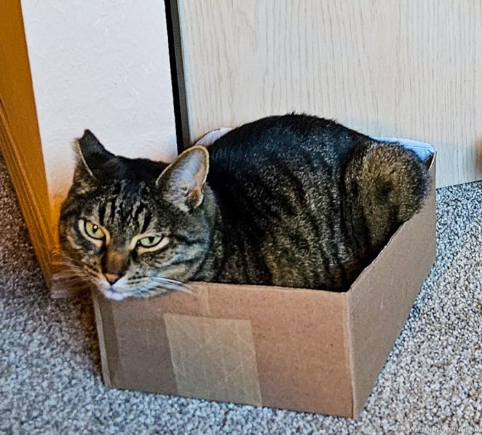 Amazing how cats can squeeze into a tiny box and how they love little cardboard “hide-outs”. 🐾❤️🐾🥰 Reply