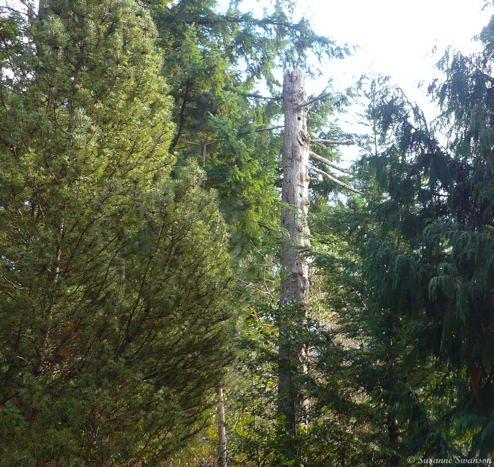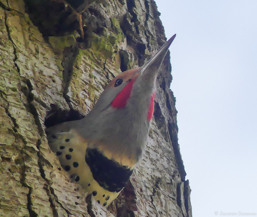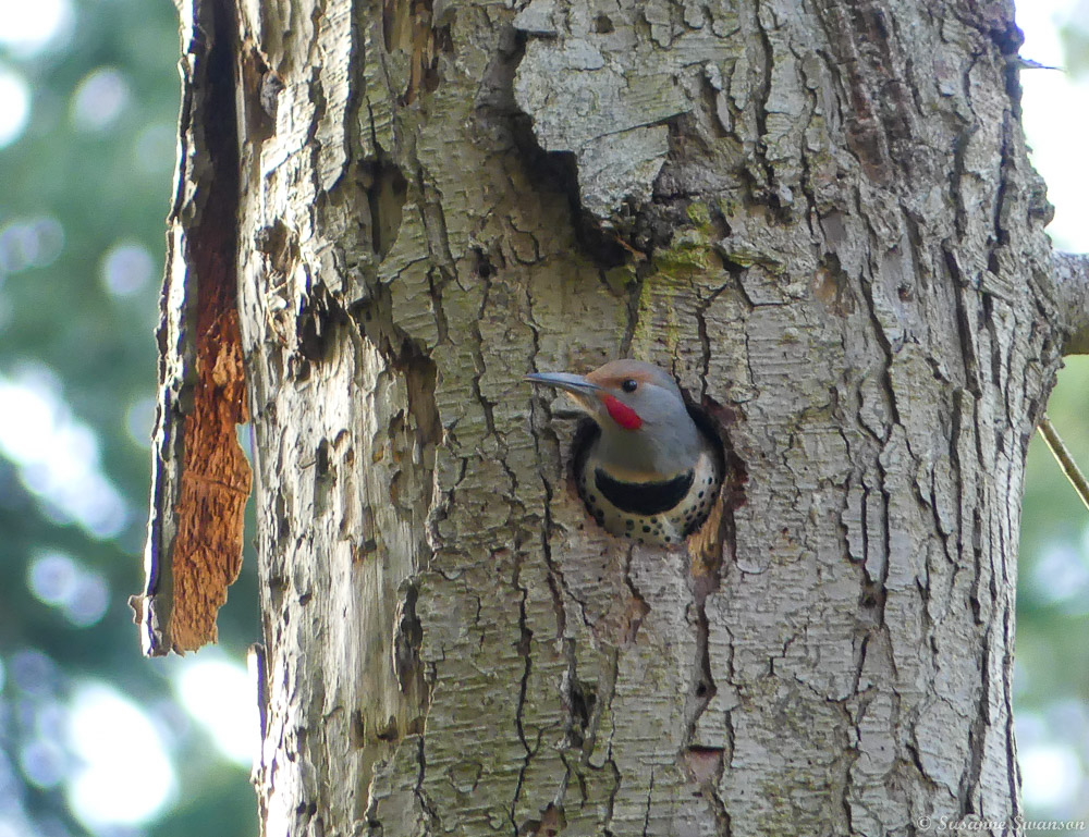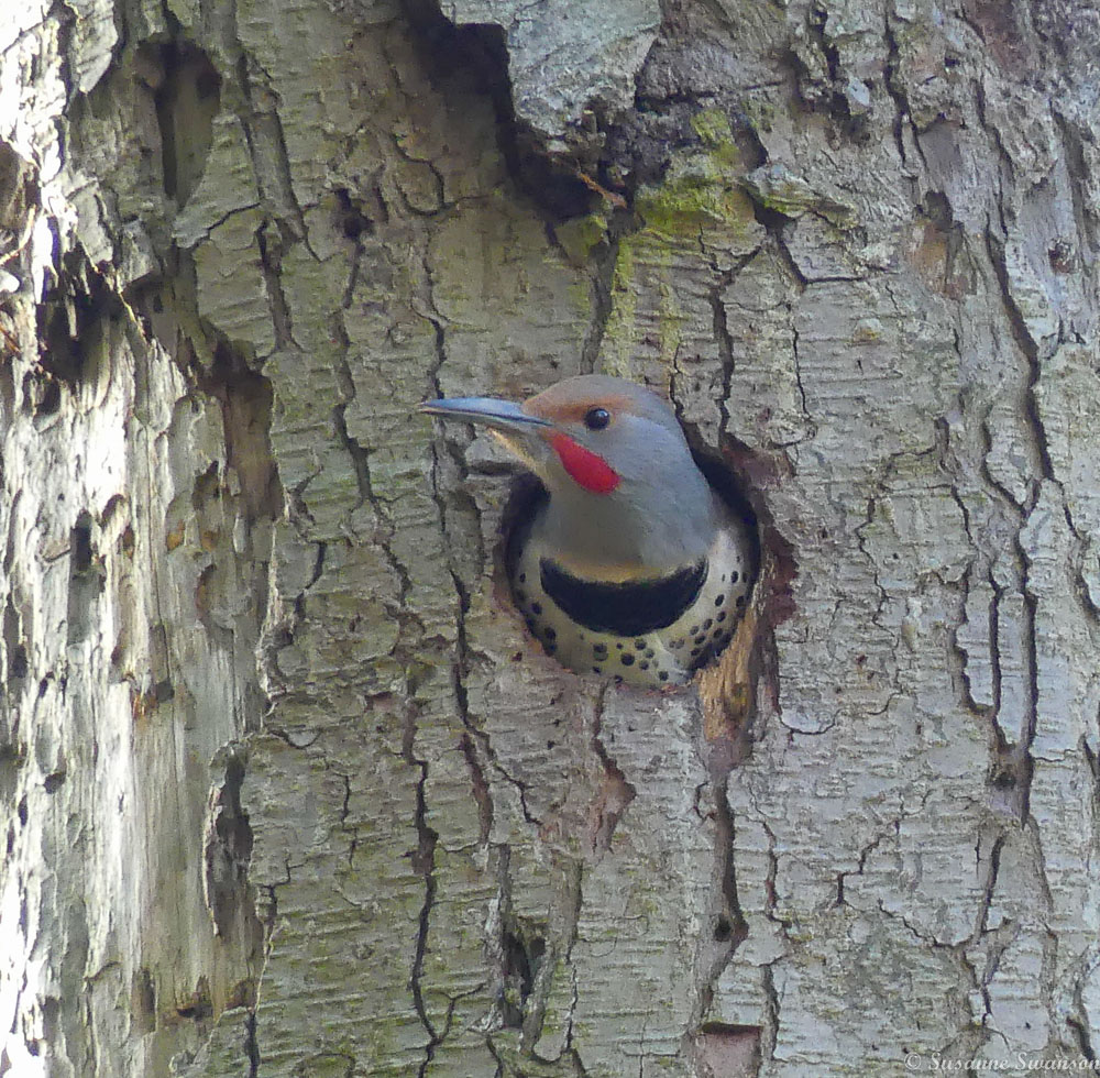 Northern flickers have returned to the snag out front, a dead tree we left standing for the birds and other wildlife.