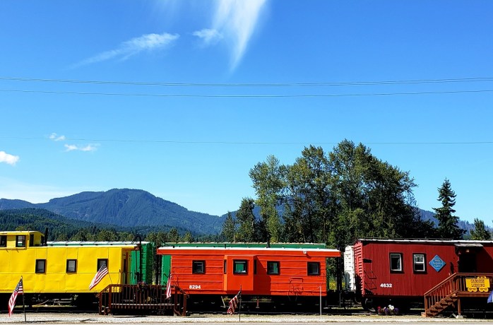 Need a place to stay for the night? Check out the red caboose on the way to Mt. Rainier.
