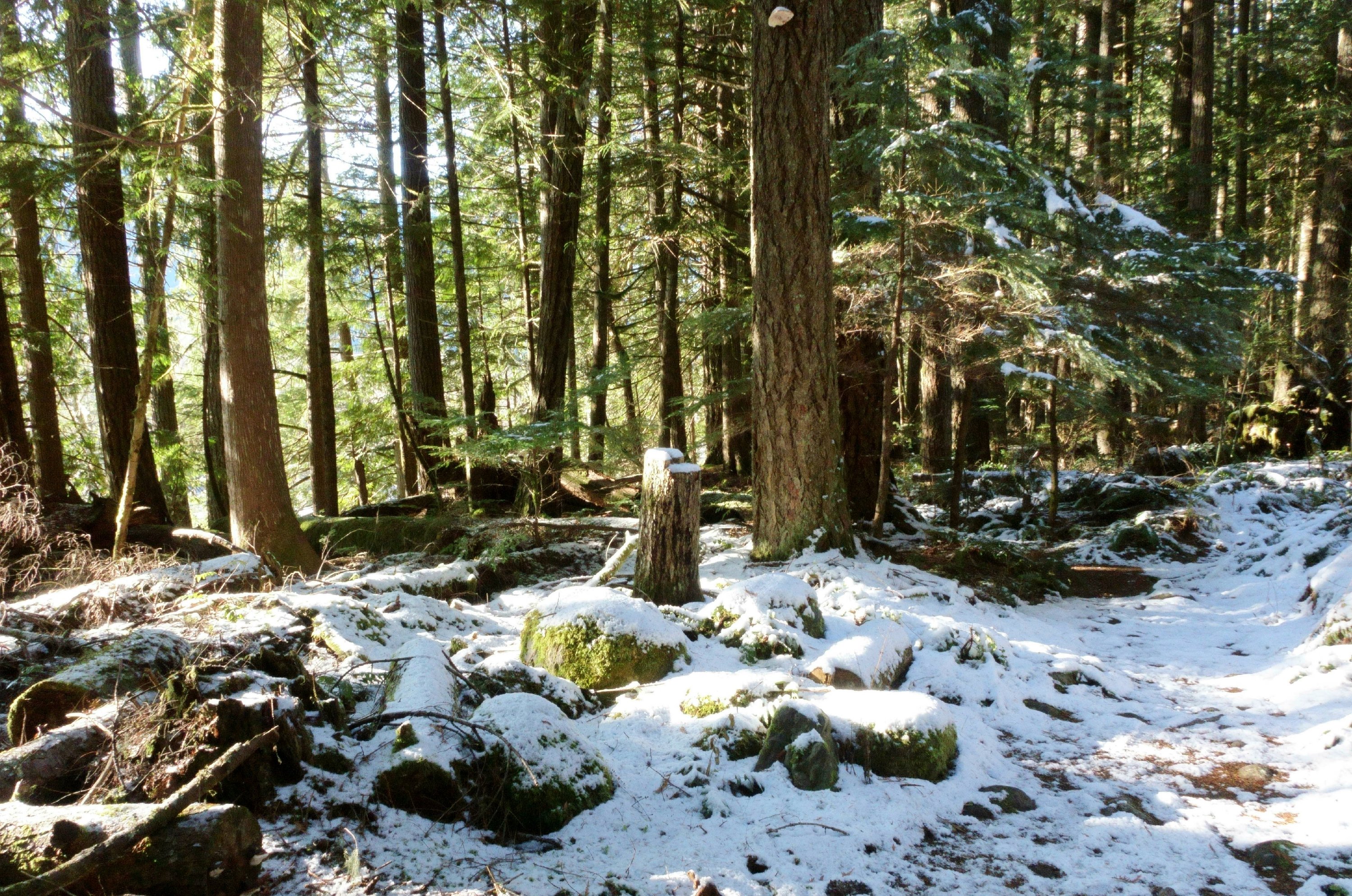 It was also a surprise to find the gate to the park locked. But no matter; we left our car by the side of the road and were welcomed into the woods by the resident ranger. And though the trails were covered in snow it was mostly dry and crunchy beneath our feet.