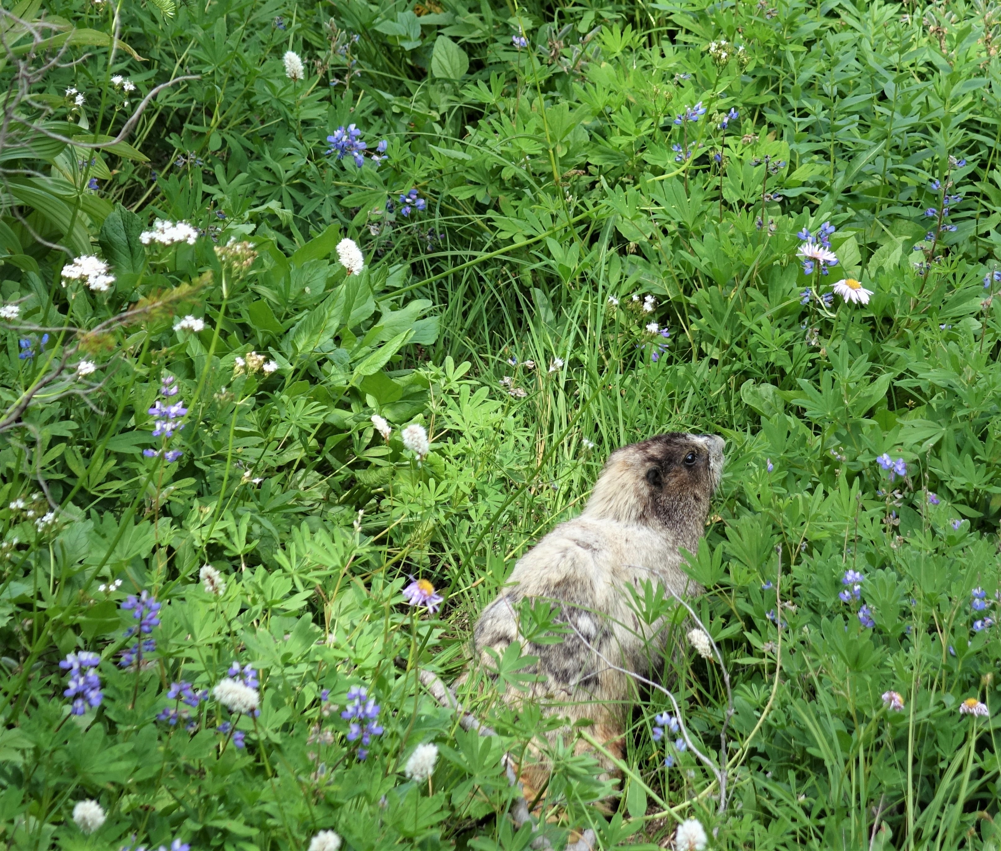 and we were lucky to see a fat marmot feasting in the meadows.