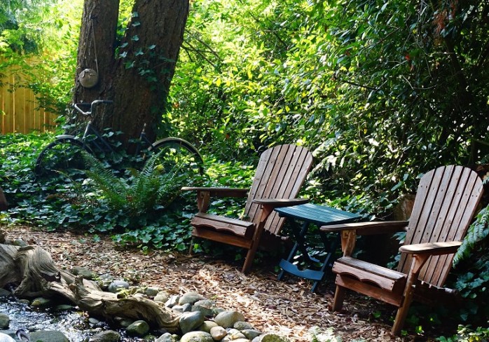 This morning I went outside to have my coffee by the stream and some quiet time alone.