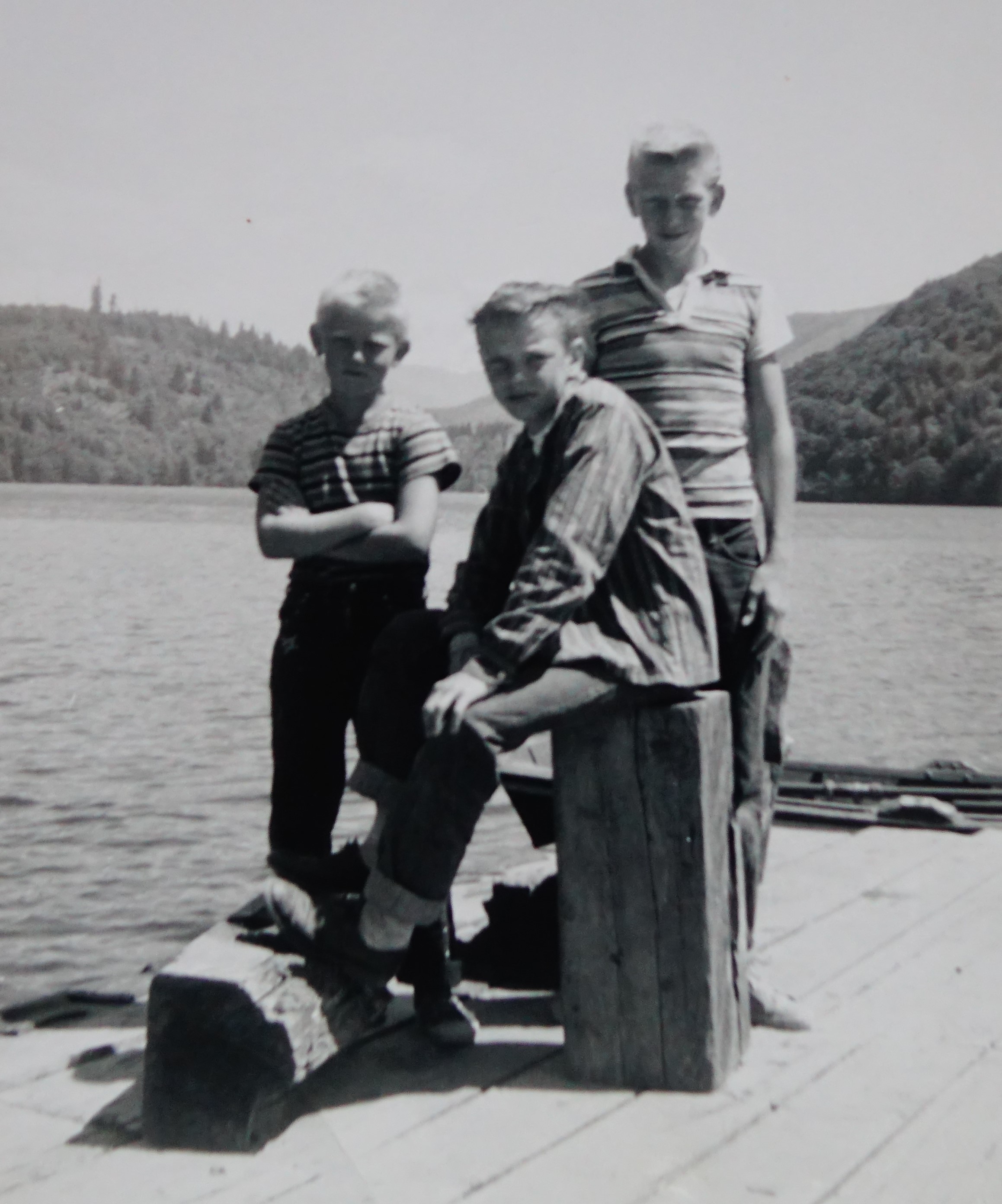 Bob started coming here with his parents and their friends sometime during the last century. The parents would set up their trailers and leave them there all summer and their boys would have a grand old time. The picture below was taken at Mineral Lake back in the days of black and white. (Bob is the cute one in the middle.)