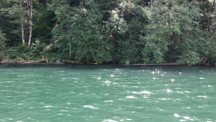 After three and a half miles we stopped for lunch next to the river, which comes from the Carbon Glacier. It was wild and deserted – just the kind of landscape where I would expect to see grizzly bears if I was in Montana or Alaska. Thankfully I was not. And none of the resident black bear came out to greet us either.