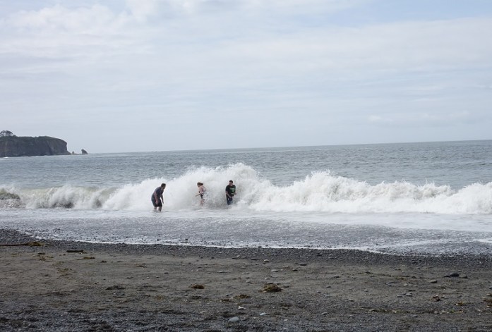 I picked up the pace remembering my husband back at camp. Well, as much as you can when you’re stopping to watch the waves crash onto the shore – who can get enough of that? – and seagulls overhead and seals bobbing in the water, all the while looking for whales (I saw none.)