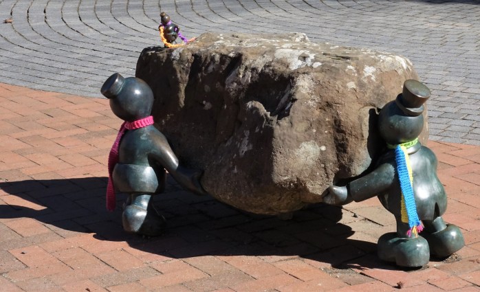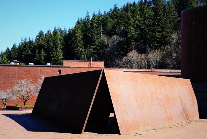 There was the steel wall sculpture , Wright’s Triangle, that we walked through, and where you can see Sehome Hill behind,