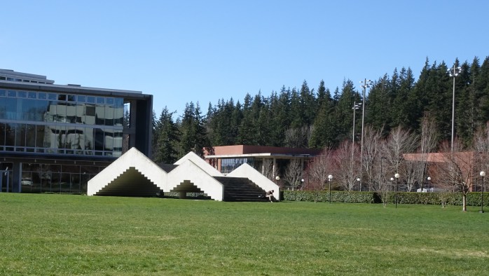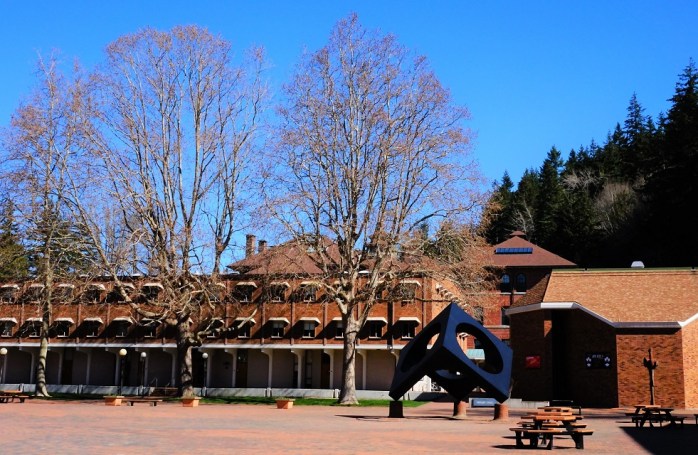 Bob did just that the next morning while I slept in. I was saving all my steps for the walk on campus – Western Washington University – where I spent most of my college years during the last century. The campus is intimate, with woods on one side and views of the bay on the other. Red Square is still the centerpiece surrounded with buildings like Miller Hall where I enjoyed many of my liberal arts classes.