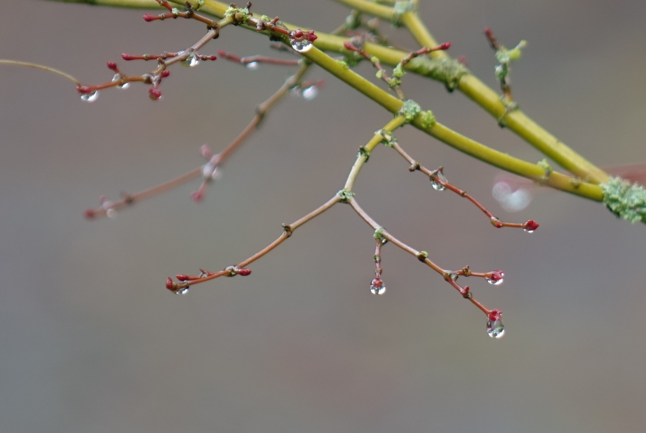 We’re cold and rainy for a few days here in the Pacific Northwest so I curbed my plans for today’s outdoor activities. Even so, I found the raindrops on our maple tree to be exquisite and wanted to share them with you.