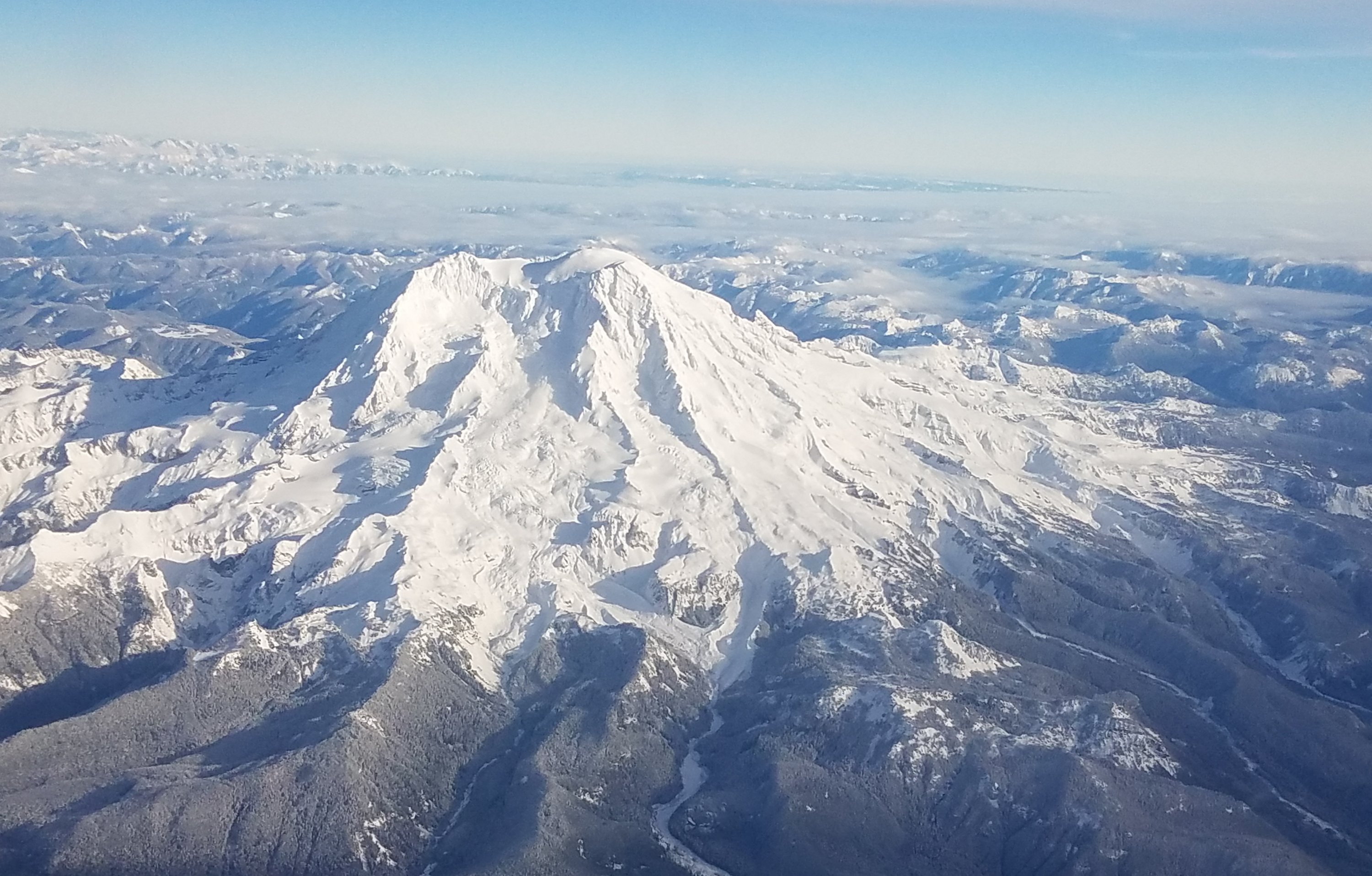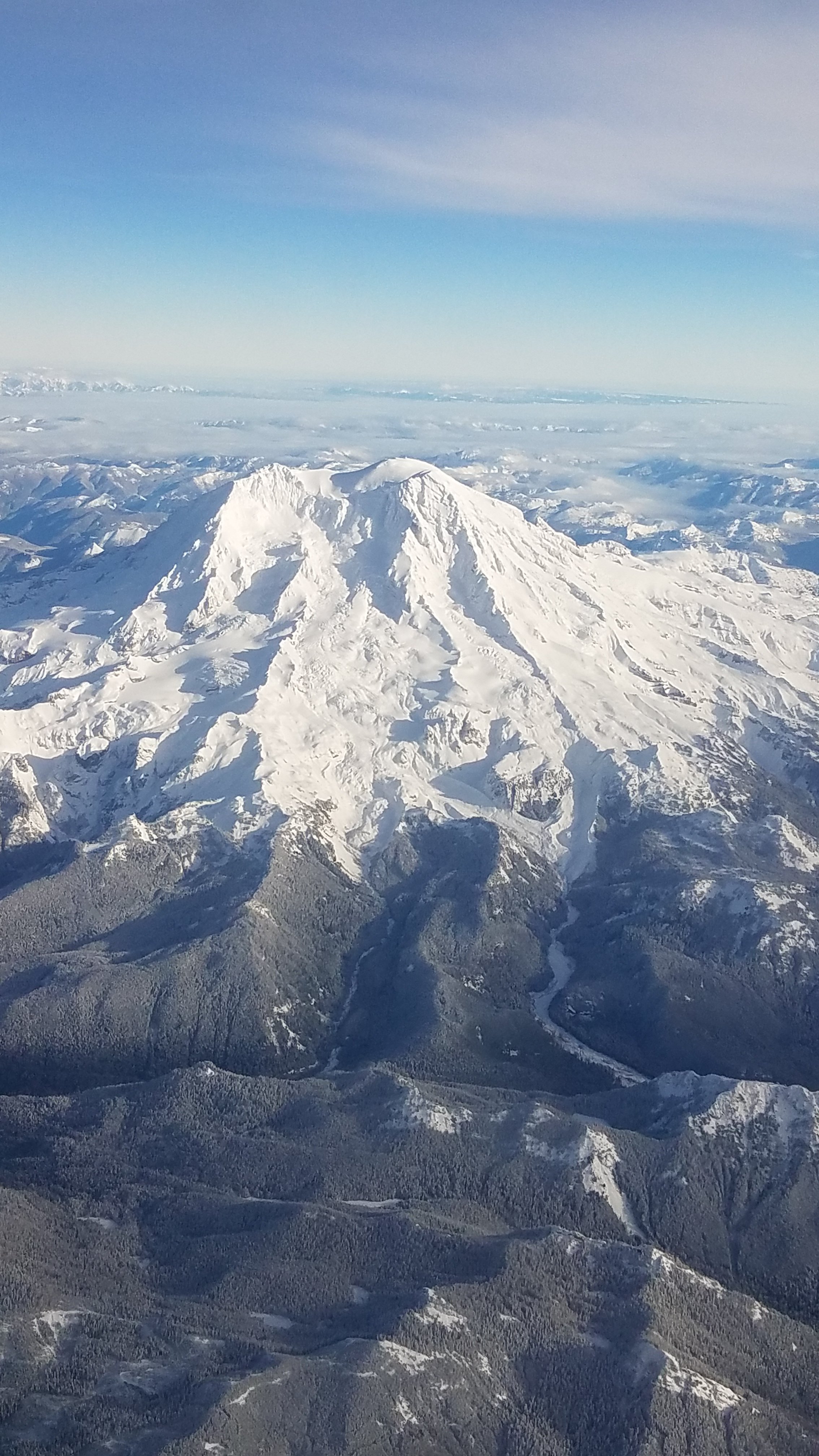 On our recent flight to southern California I made sure to book seats on the left side of the plane in hopes of getting close up views of that most beautiful mountain. My husband graciously forfeited the window seat and shortly after takeoff Mt Rainier came into view.