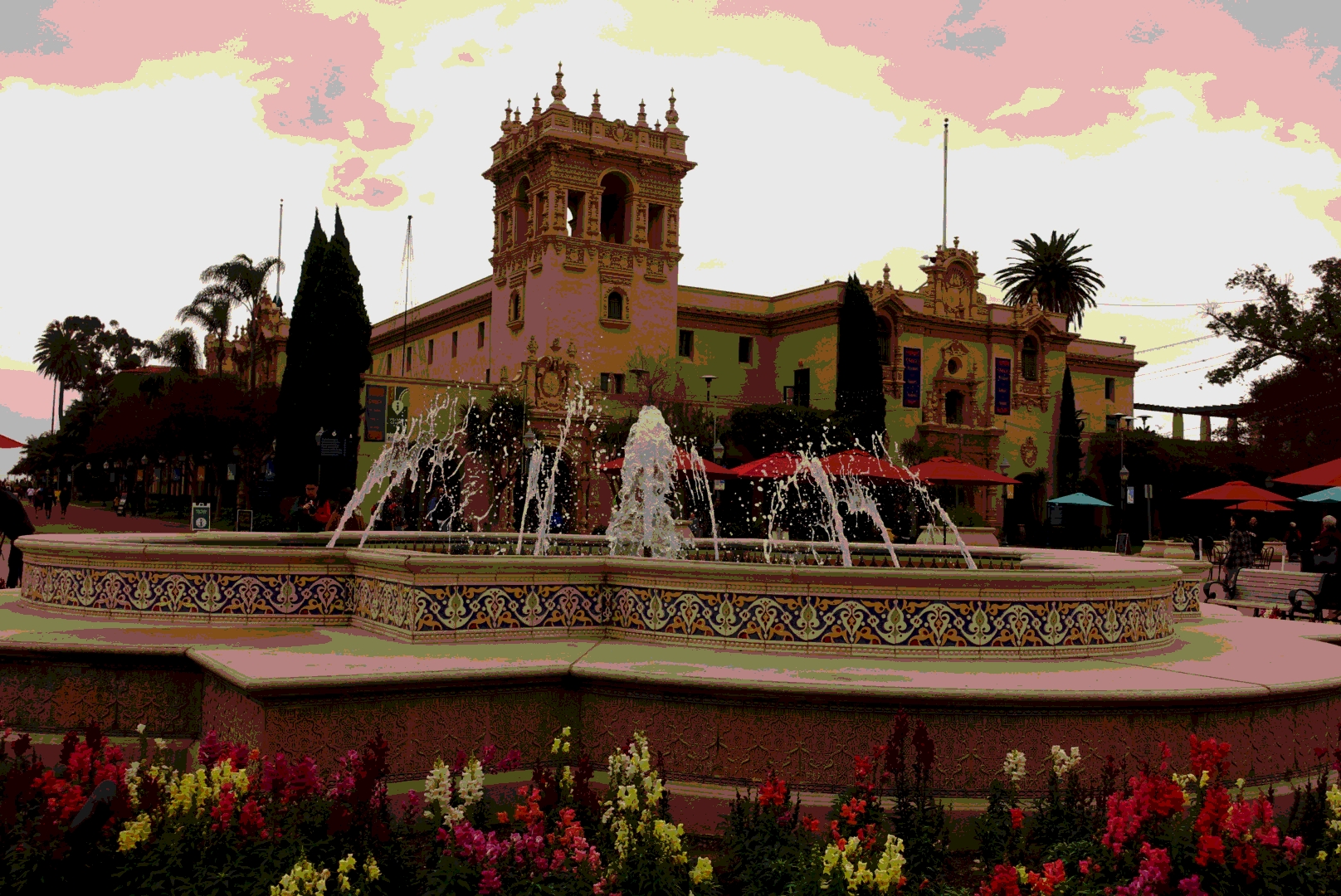 Many of the Spanish-Renaissance style buildings built for the Exposition still exist along Balboa Park’s famous El Prado walkway and this is where I spent most of my time camera in hand. The day was rainy and gray and I admit to enhancing the photos to bring them into a better world of light and color.