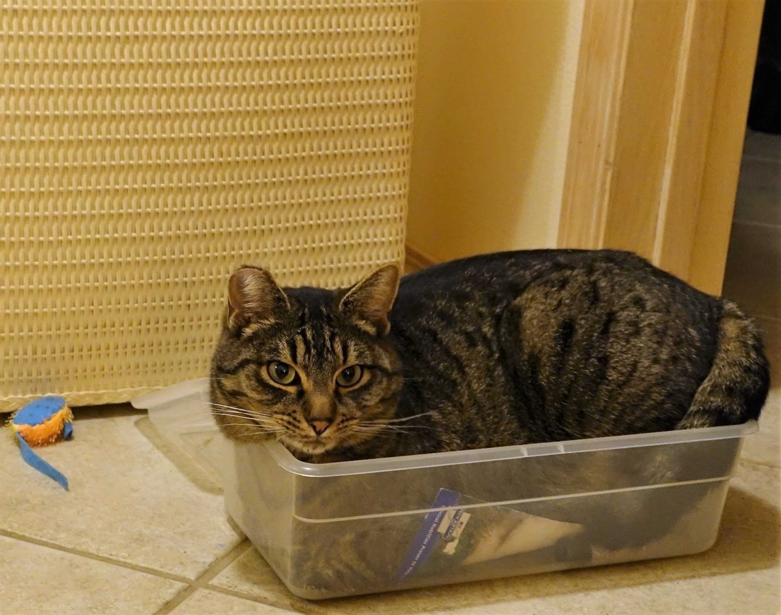 It’s good to be back in the Great Northwest and to celebrate I opened the box where the catnip is stored. Benji dove in and found it a suitable resting place.