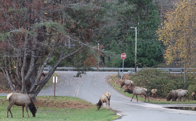 After a detour to Port Townsend for lunch, we headed south on 101 past Quilcene to Brinnon. You’ll miss the town if you blink, but we didn’t and saw nothing much had changed. We continued next door to Dosewallips State Park and were treated to a herd of elk, down from the high country to feed.