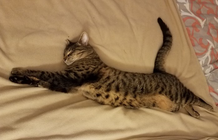 A little TV, followed by some light reading makes a cat plum tired out.
