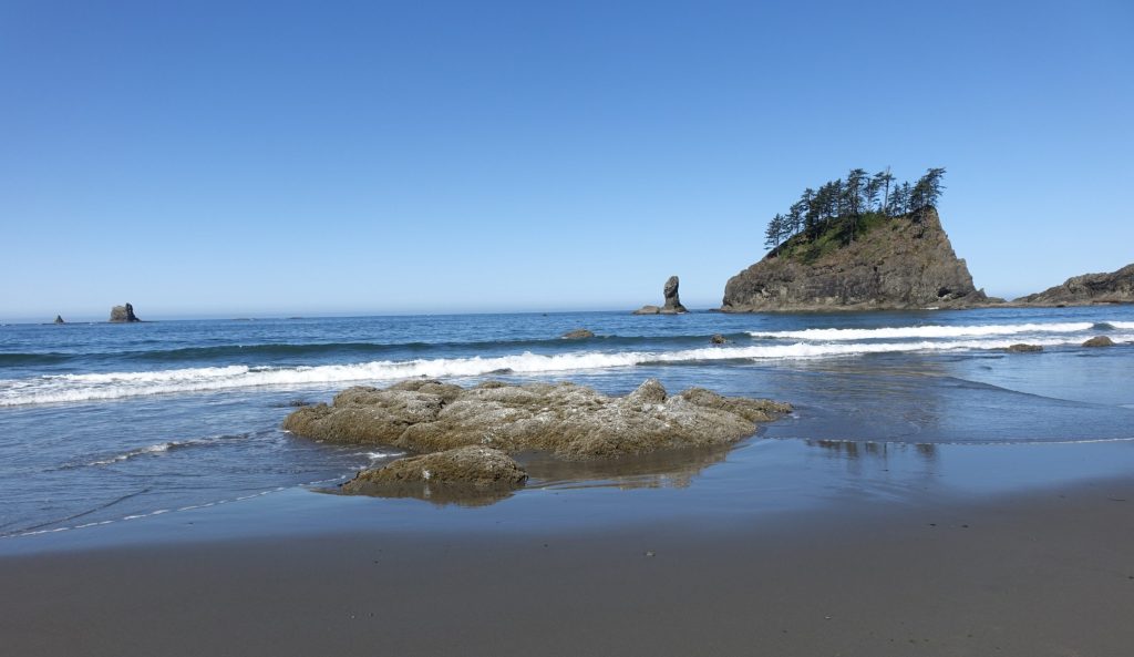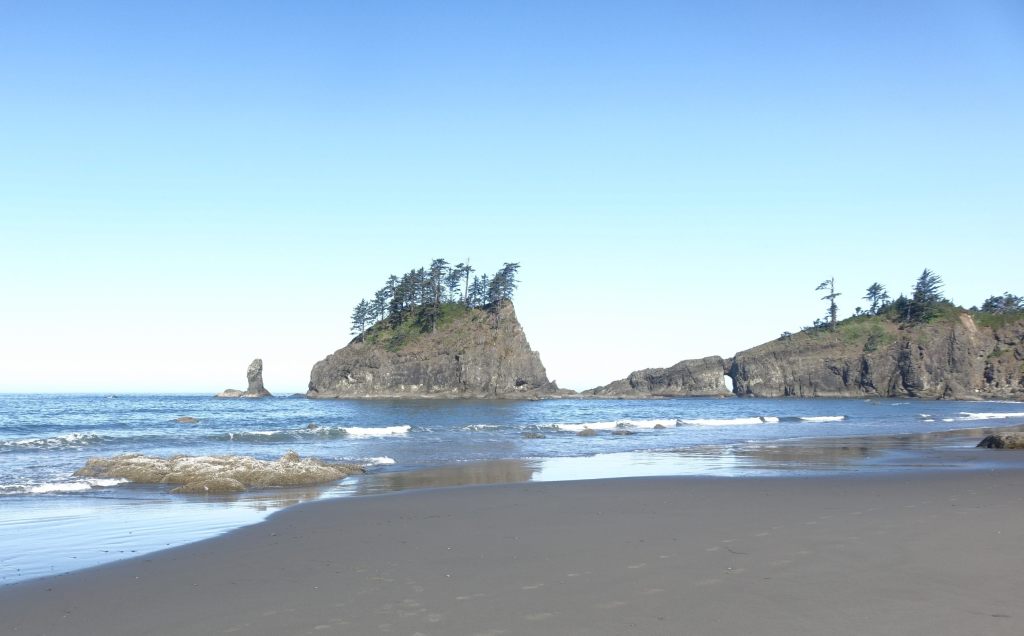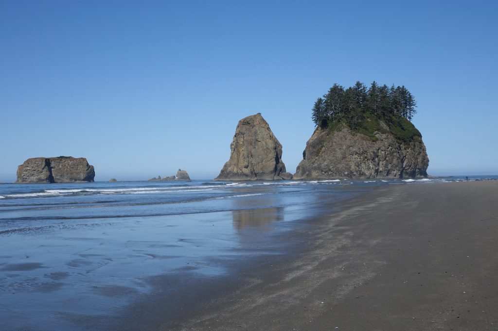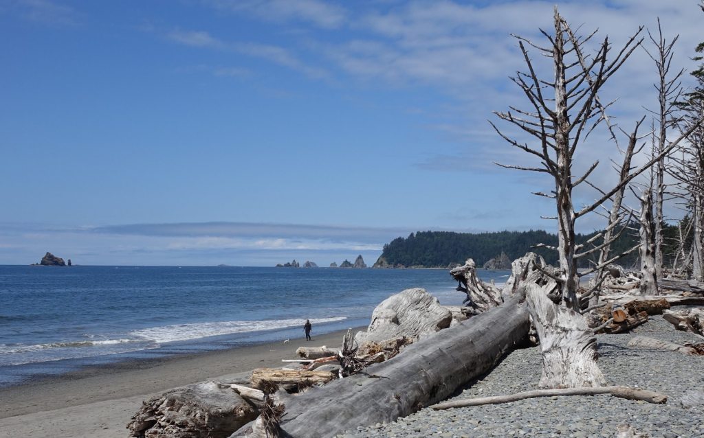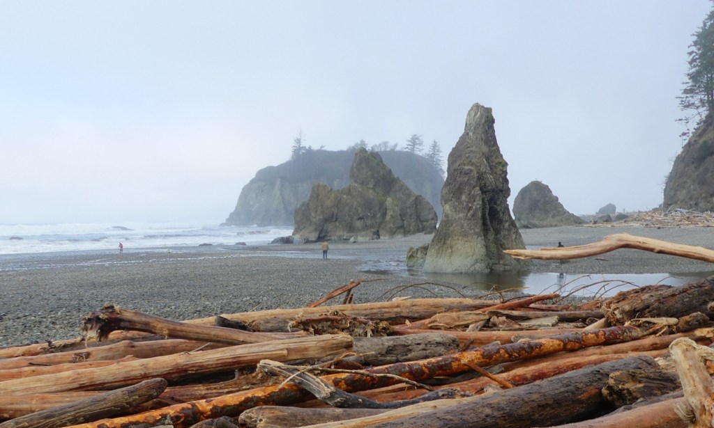 Rialto Beach, perhaps my favorite, is literally at the end of the road, primeval with its ghost logs and sea stacks, and hike to Hole-in-the-Wall.