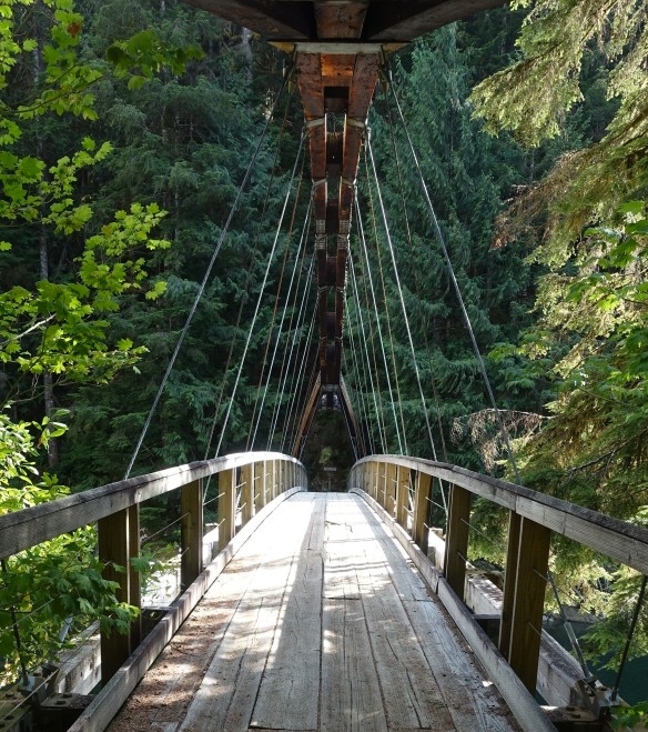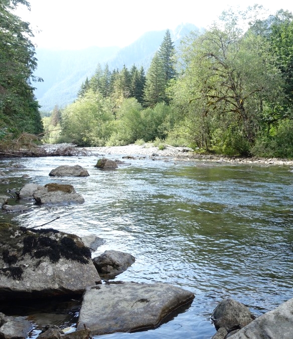 Sunshine and still summer according to the calendar, but it felt like fall on this recent hike along the Middle Fork of the Snoqualmie. Over the river and through the woods and under the watchful eye of the Cascades we went; a familiar river but our first time together on Trail #1003. The trail is open to mountain bikes (we saw none) and horses (we saw evidence) but we encountered only a few hikers like ourselves on foot.