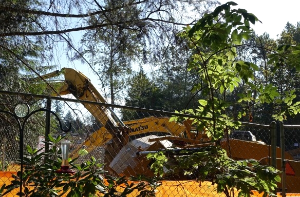 This morning I woke up to the usual noises of destruction (I mean construction) behind my house in what was once called the Tiffany Park Woods and went to take a look.