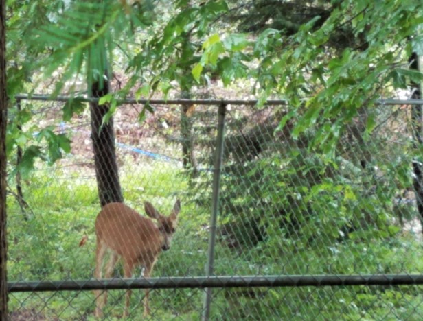 I watched a panicked red-headed woodpecker fly to a large Douglas Fir in my yard (to take up residence I hope) after the large trees around him came down. And I have never seen a sadder looking deer than this one recently taking refuge in a tiny patch of remaining woods as trees were felled nearby. I hope he made it safely to a new home.