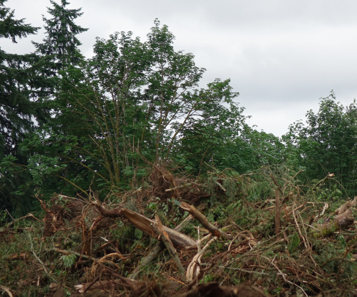 Too little too late. The beautiful Tiffany Park Woods are nearly gone, the birds and wildlife already evicted, the native flora disappeared. Still, I was heartened to know someone is paying attention to the promises made by the developer when they obtained the permit to raze these woods and replace them with 97 houses. According to a story in today’s Renton Reporter, “a stop work order was issued after inspectors found two protected trees were removed from the site.” I wondered why all had gone quiet.