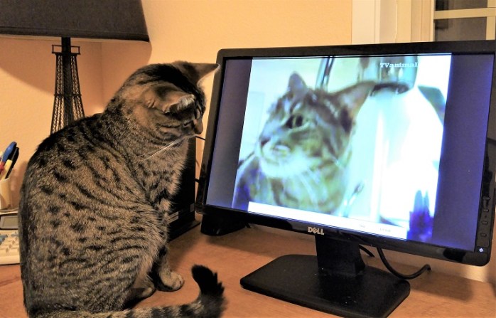 It was a beautiful day with mild temperatures and no rain. Tiger and I were out sporting around, all in good fun. Sue happened upon us just as I found the catch of the day. Bad timing to say the least. And wouldn’t you know it she accidentally let him escape by picking me up to cuddle at the most inopportune moment. Oh well. I’m always up for a cuddle. And I knew I could catch him later. He was not that bright and he was awfully slow. (Just begging to be caught in fact. No challenge at all. But I digress.)