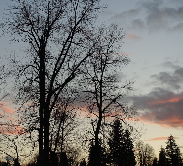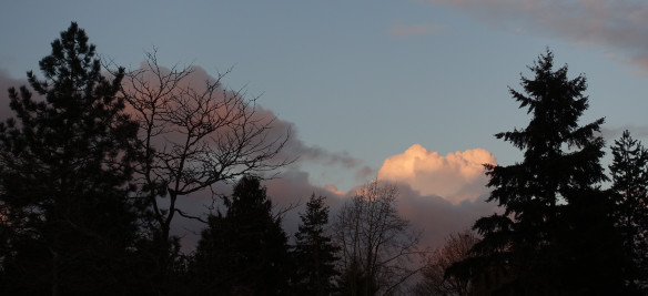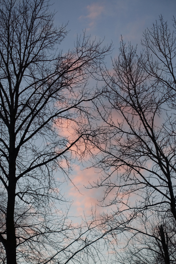 Just before sunset tonight I took a brisk walk in the neighborhood and was reminded again of how much beauty there is in the ordinary everywhere. I love to travel but if I wasn’t able to I’d be happy knowing that all of this exists outside my door. Just give me the sky, clouds, trees and sunset and it is enough.