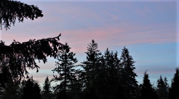 I woke up too early this morning and after a few restless hours ventured outside as the sun was peeking through the woods, painting everything with a rosy glow.