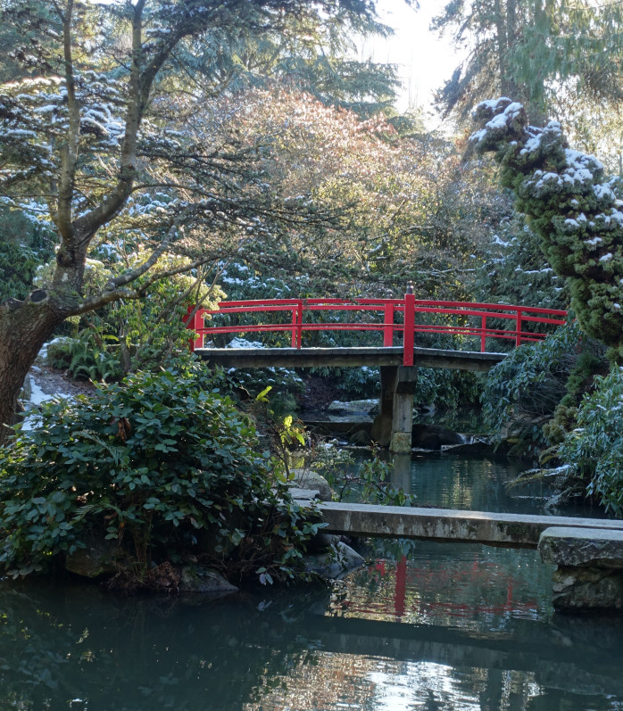 Today is sunny, the sky a heavy blue, the temperature a frigid 26 degrees; a great day to visit Seattle’s relatively unknown Kubota Garden.
