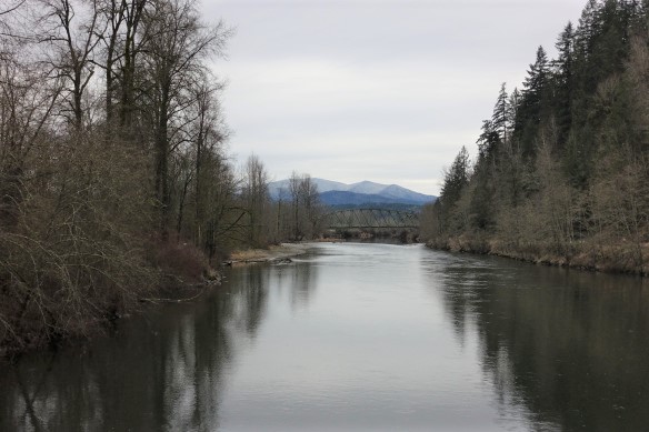 It was a nice day for a drive in the country to get some fresh air and to enjoy the winter landscape before the rain was scheduled to appear. We found the Snoqualmie River moody and reflective of the cloudy skies…