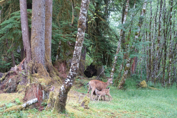 Unless you are staying here continue on to Sol Duc and set up camp at the RV park and welcome your friendly neighbors, this mama deer with her two fawns..